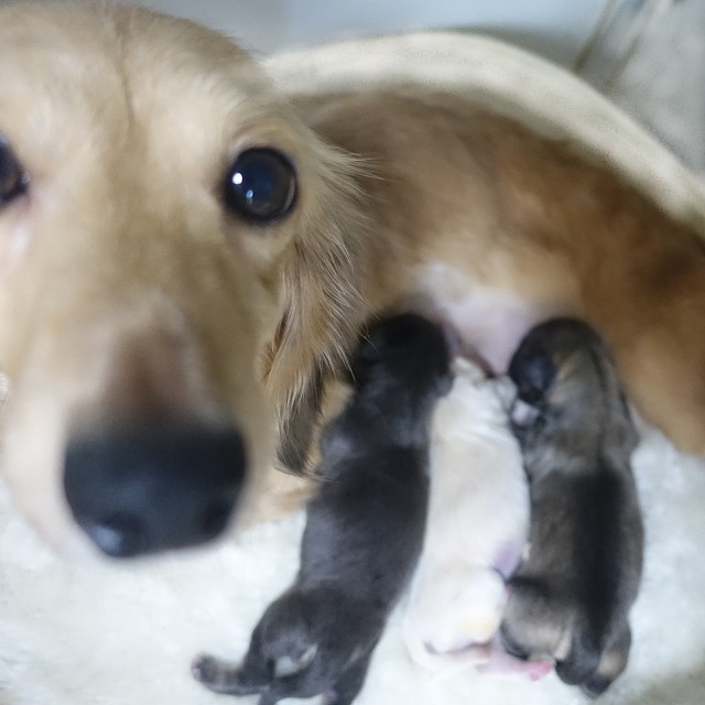 この度、シェーテッドダックスママがマルチーズのマルオ君との間にマルックス3頭を生みましたよ(先にブログ紹介しています)
