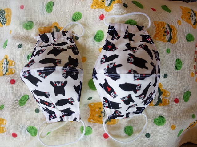 人気のくまモンマスク(主人と私のマスク 鼻芯・鼻先部分高く・・夏に蒸れず息苦しさ軽減)