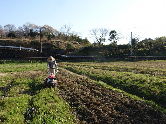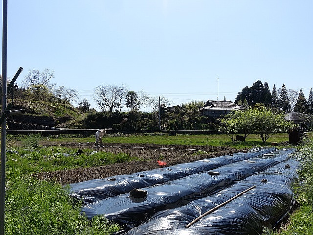 小春日和、キュウリ、ニガウリ、オクラ、トウモロコシ、ピーマン等床作り
