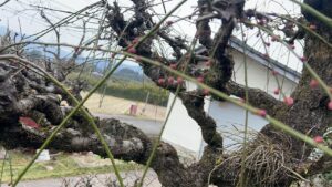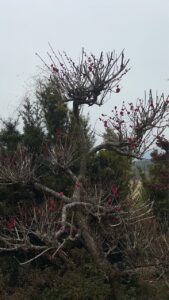 季節の流れは速い、見て見てと北玄関日差し余り当たらないのにやっと咲き、健気にアピールしている梅の花です。