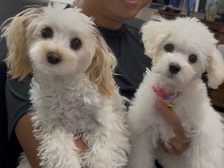 沖縄に当店から2頭目お迎えのマルプー瑚菜(こな)ちゃん先住コナちゃんと仲良しショット
