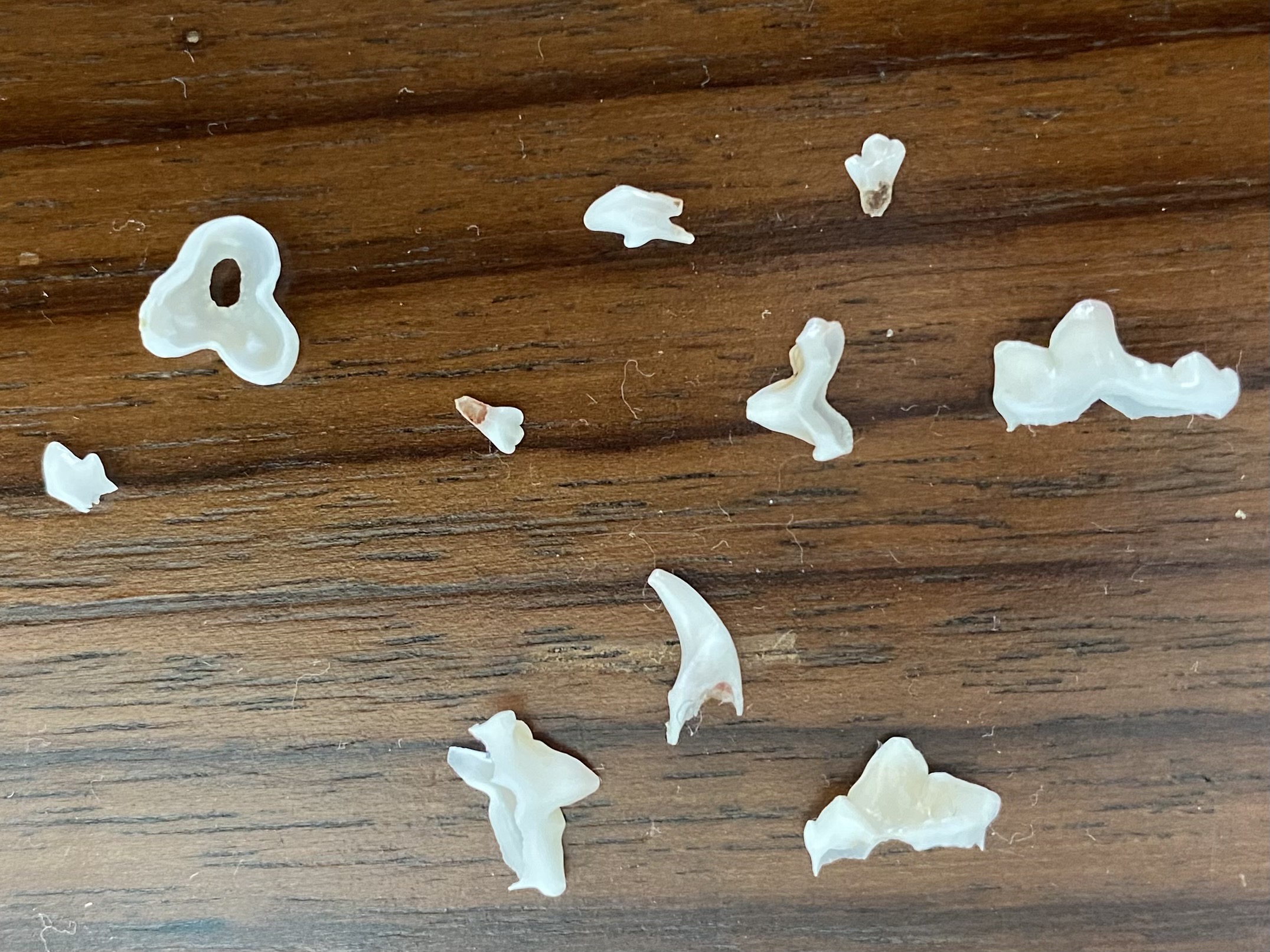 飼主様がたまたま床で発見することはありますが、大抵は殆どの子は呑み込んでしまうことが多いので床発見はごく僅かの乳歯2個前後位です。