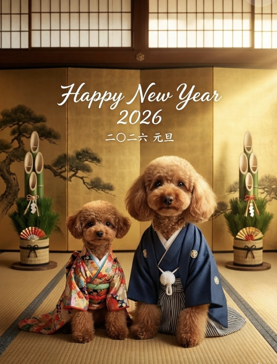 2019.7月生のシャルル君と2024.10月生セイラチャンのお正月ショット