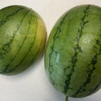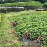 今年最後の収穫の小玉すいか スイカが終わりのシーズンに入った収穫終えて枯れたしまった伸びた茎を根元から切った後 …