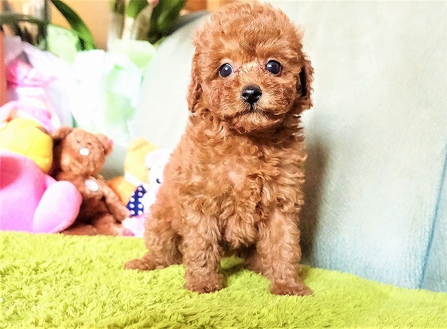 天真爛漫、人懐こく賢い優しいカラーアプリコットプードル男の子